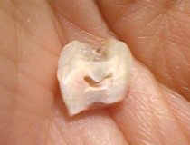歯をふたつに割り、器具を差し入れて「てこ」の要領で抜く。